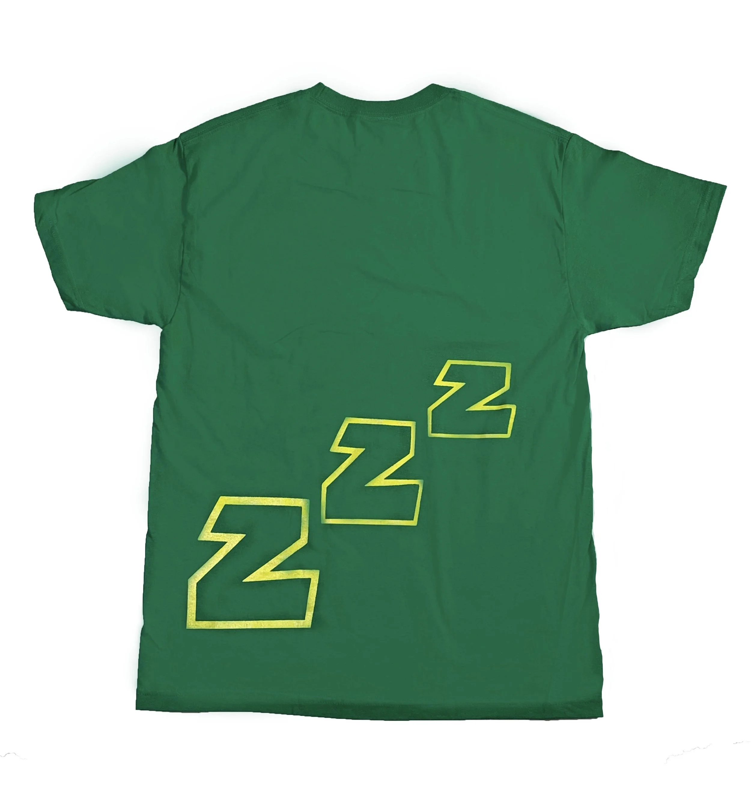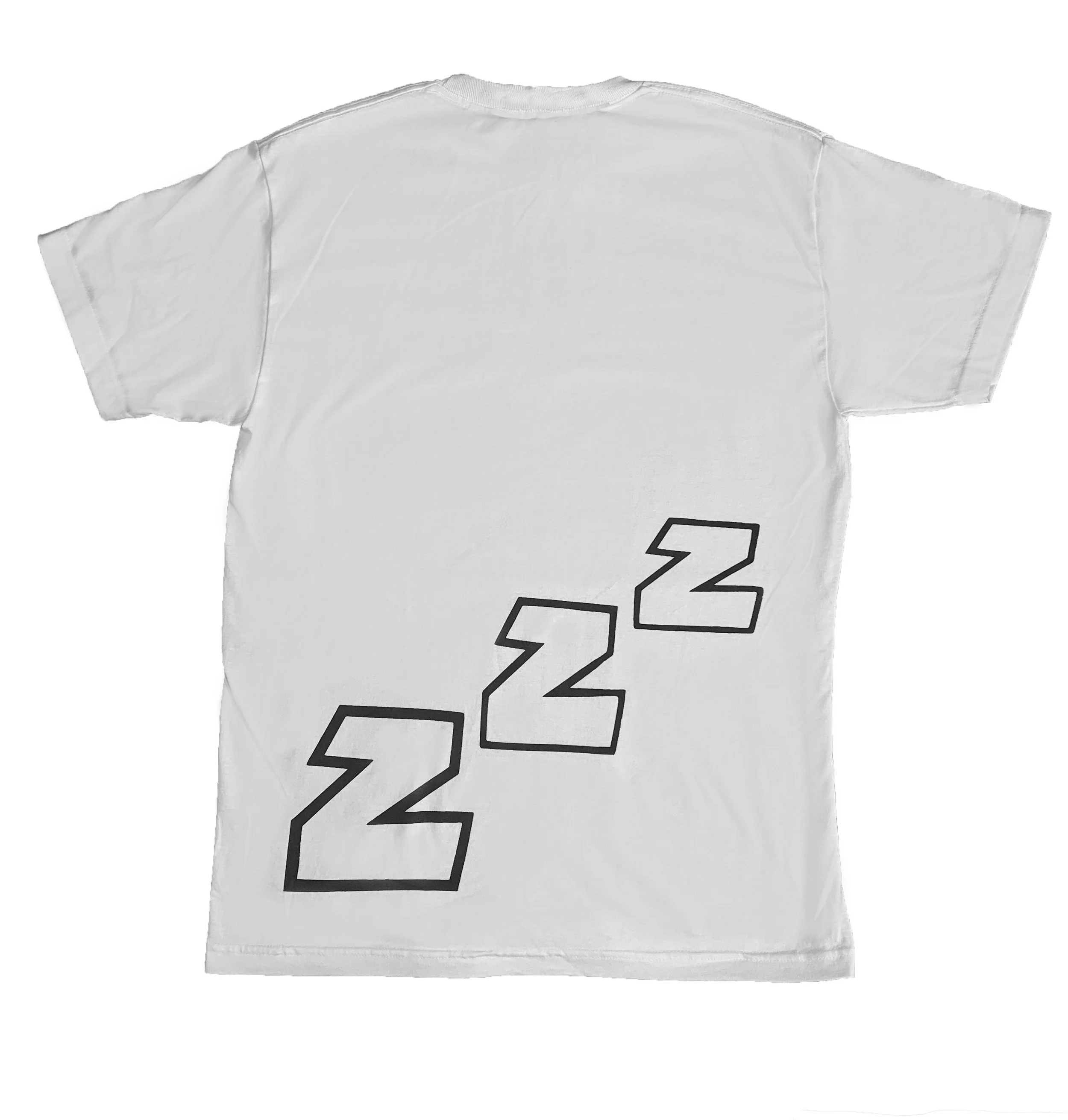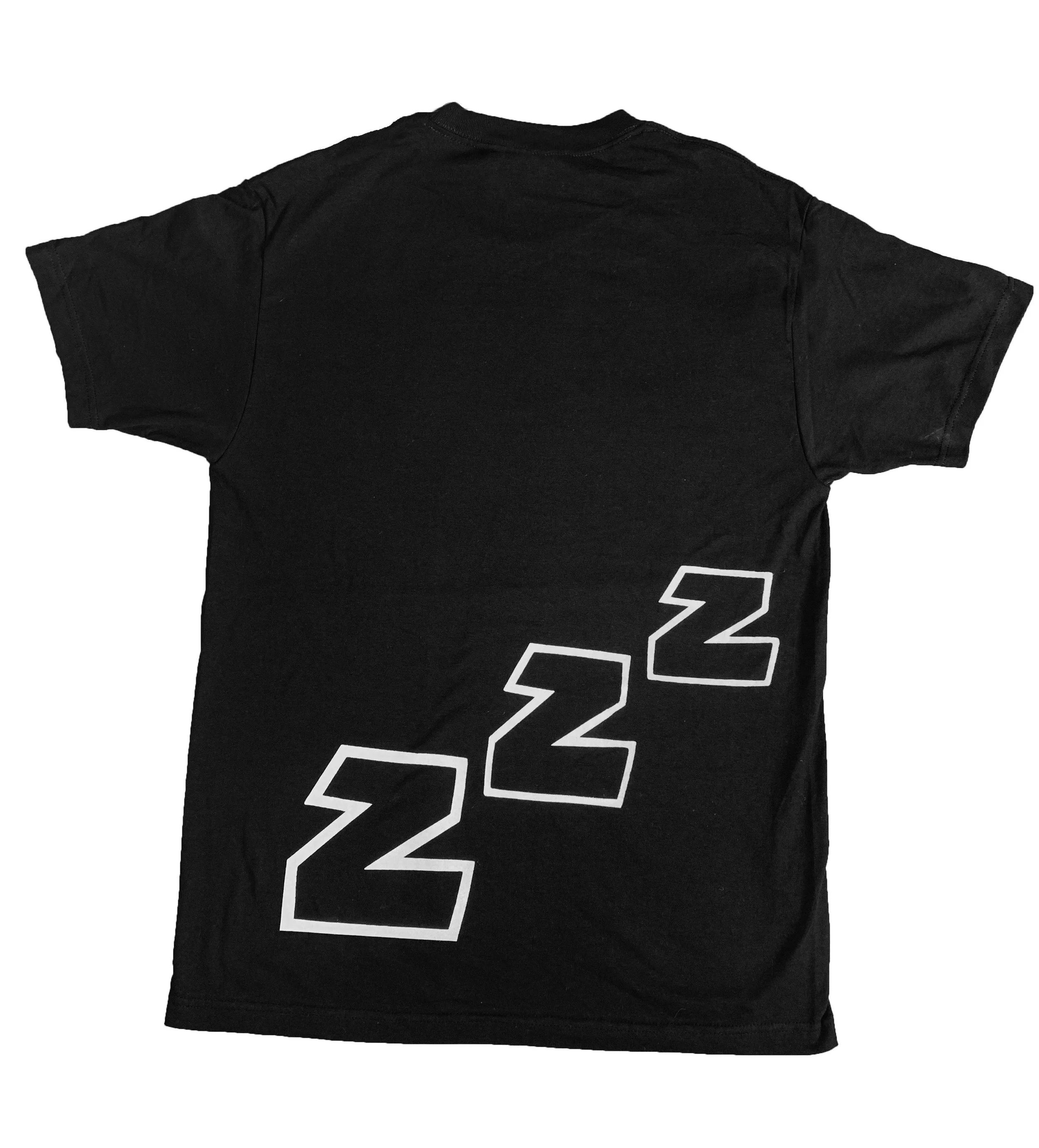 'zzz' t-shirts (2019) 100% cotton, Alstyle blank, hand-screenprinted, custom label; white, black, green, purple
